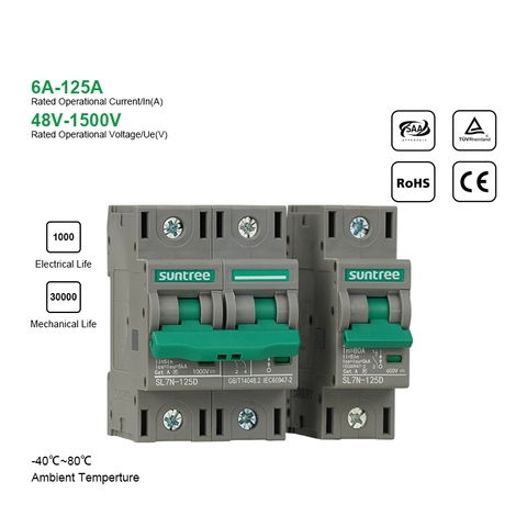 Suntreeミニチュア回路ブレーカ工場直送DC MCBブレーカTUV CE CB IEC定格電流25A/125A"